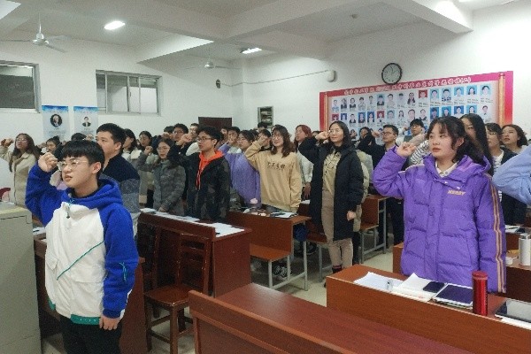 全体同志面向党旗庄严宣誓,屈杜炜同志进行总结,要求各位同志在今后的生活中不忘今天的宣誓,真正做到在思想上入党,向身边优秀的党员同志学习,初心不改,以为人民服务为行动指南,做一名优秀的共产党员。