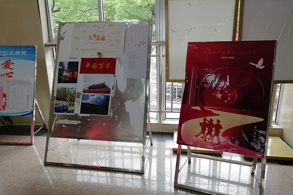 活动组织各班学生通过投稿书法、摄影等形式绘制建党百年的主题画卷,共从学院数名学子中征集到书法、摄影、手工等作品十数幅,经过两天时间的线上评比,此次活动评选出七名获奖选手,获奖作品及老师作品于化工院大厅进行展示。