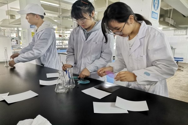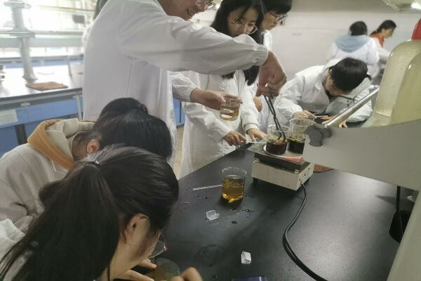 经过前期的安排,理事会成员先来到分析实验室进行了预实验以及所需实验仪器的准备和摆放。理事长张淑雯和理事胡媛媛讲解了实验步骤和注意事项。同学们了解后就开始分组进行叶脉书签的制作。志愿者们在理事的帮助下,按照实验步骤完成实验,在书签上涂上自己喜欢的颜色后塑封带走。活动结束后,理事们处理了废液,认真打扫实验室卫生,整理器材。