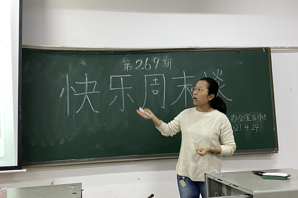 (通讯员 李晓慧)4月24日上午9时,英国365集团举办的第269期“快乐周末谈”在化工院117教室开展,1908班班导师杨蓉作为特邀嘉宾出席此次快乐周末谈。