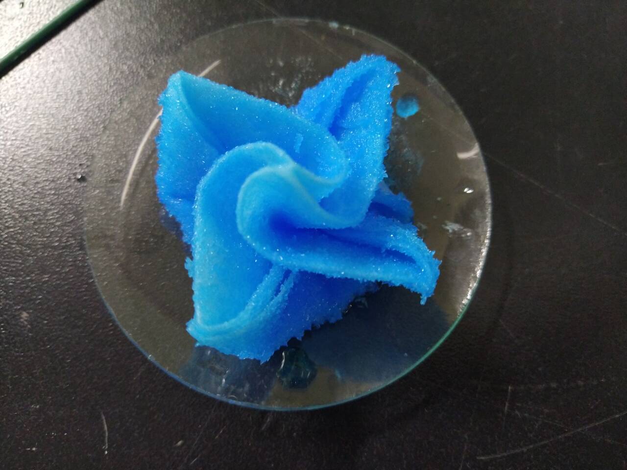 活动分为折纸和结晶两个部分,通过将折纸放入热饱和硫酸铜溶液中,冷却等待结晶,制成晶体玫瑰。参与活动的会员们提前学习了折玫瑰的步骤,通过自己的努力都成功地制作了几朵晶体玫瑰。为保持实验室卫生,活动结束之后,两位会员打扫卫生。