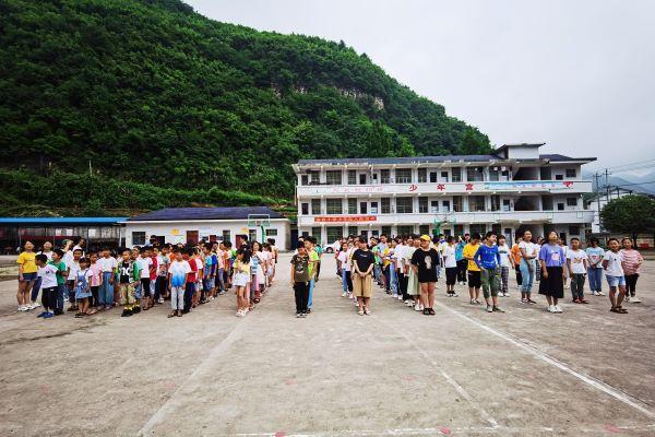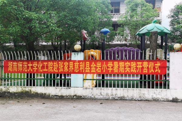(通讯员 张怡然)7月6日9时,英国365集团学生会暑期三下乡开营仪式于张家界慈利县金岩小学篮球场举行。教导处主任李双双,队长王贺雷,副队长刘嘉怡,学生会三下乡暑期实践队伍的全体成员以及参加三下乡活动的所有小朋友参与了此次开营仪式。此次开营仪式由文娱组周柳辰主持。