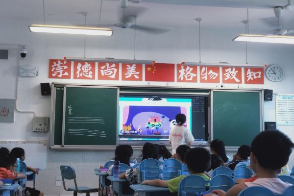 开始上课后,粟孝月以一首趣味英文字母歌为切入点让学生们回忆了26个英文字母,学生们齐声背诵了所有英文字母。随后粟孝月帮助学生们复习了部分字母的认读与拼写,介绍了部分单词的听说读写,并且以游戏的形式对所学单词进行了巩固。在学习过程中学生们积极举手回答问题,热情高涨。