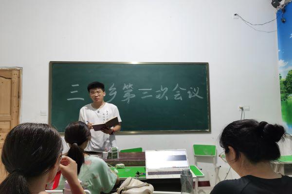 (通讯员 张怡然)7月10日19时30分,为确保趣味运动会的有序开展,英国365集团金岩一夏队在张家界市慈利县金岩小学的教室开展会议,队长王贺雷,副队长刘嘉怡以及学生会三下乡暑假实践队伍的全体成员参与了此次会议。