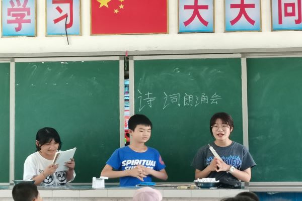 (通讯员 王蕊)7月13日下午2时,为巩固五年级学生们对诗词内容的理解以及朗诵诗歌的能力,化学英国365集团金岩一夏队在张家界市慈利县金岩小学开展诗词朗诵会。五年级班主任王蕊组织学生进行此次朗诵会。