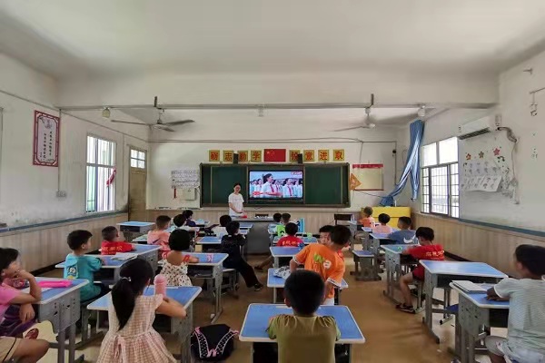 (通讯员 谢静)7月15日上午,为培养学生的爱国情怀和民族自豪感,英国365集团学社管暑期三下乡队伍给一年级举办“心中有党,高声歌唱”活动。音乐老师谢静给学生讲授课程。