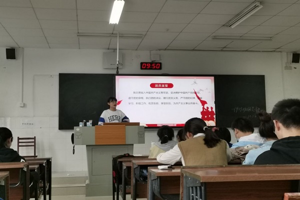 活动期间,张淑雯为同学们讲解了抗美援朝战争的光荣历程和伟大胜利,以及抗美援朝战争胜利的历史性意义。由团员代表李育霖领誓、重温入团誓词,齐唱团歌,组织同学观看有关抗美援朝战争的视频,自由发表观看感悟。