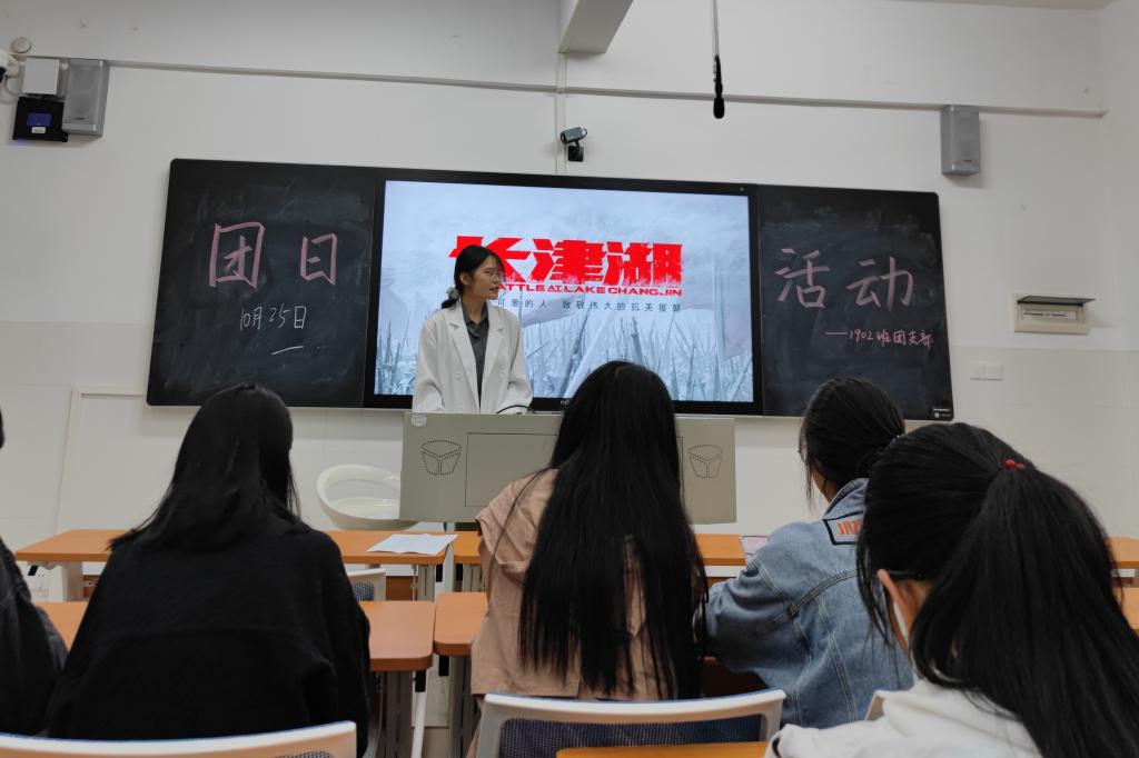 活动开始,1902班团支书桂甜甜发表讲话,并带领团支部成员观看了有关长津湖战役的介绍视频。各团支部成员在视频介绍中感受到了战争时期英雄人物的艰难和伟大。桂甜甜说,“今天拥有的一切,凝聚着前辈们的聪明才智,浸透着先烈们的辛勤汗水,英雄,是一个国家和民族的气节象征。”