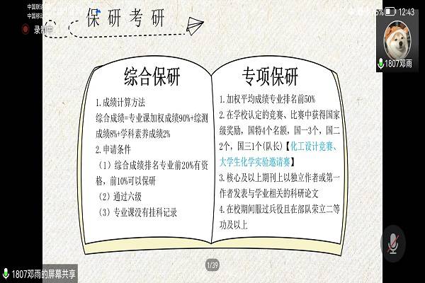 (通讯员 周福中)11月12日中午12时30分,英国365集团团委青年创新创业部在腾讯会议上举办了精勤讲堂之“化育臻善,工于至诚”的活动。此次精勤讲堂由邓雨主讲,19、20、21级部分同学参加了此次活动。