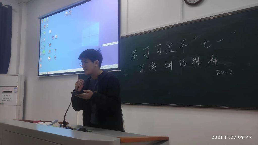 吴碧雯向同学们诵读了习近平总书记“七一”重要讲话,寝室代表轮流上台分享心得体会。大家深切感到,习近平总书记“七一”重要讲话是坚定信仰信念信心的最好教科书,是闪耀着马克思主义真理光辉的纲领性文献,是我们以史为鉴、开创未来的宣言书,是激励全党全国各族人民奋进新时代、走好新征程的动员令。活动期间,吴碧雯向同学们提出关于习近平总书记“七一”重要讲话的问题,同学们踊跃回答、积极参与。