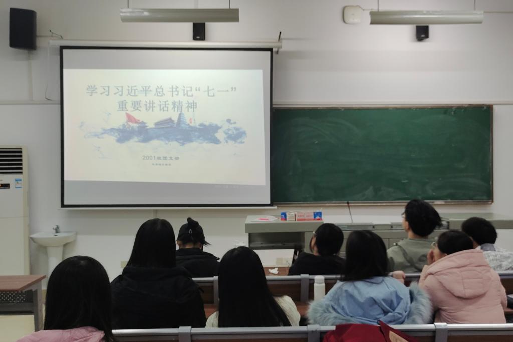 活动开始,主持人于越简单介绍了习近平总书记“七一”重要讲话精神,带领同学观看相关影片。邓书平、高杰、杨丹丹、唐嘉庆参加本次演讲比赛。经过四位同学的精彩演讲,同学们对习近平总书记“七一”重要讲话精神有了进一步认识。