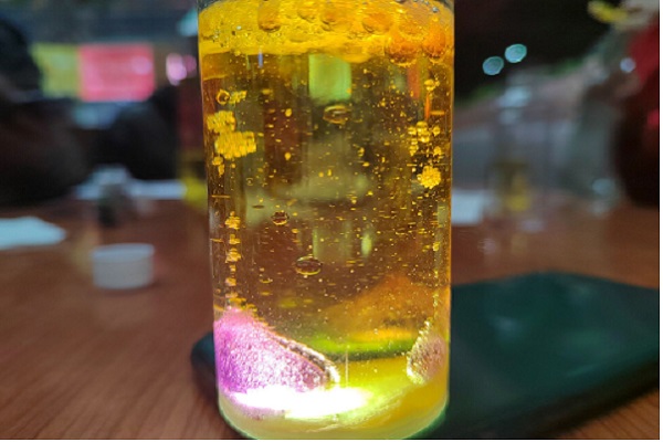 此次活动中,理事长伊方园提前安排好各项事宜,理事们带领会员前往江边食堂进行趣味化学实验活动。参与活动的会员们提前学习了实验步骤,通过将混合色素后的白醋倒入装有小苏打和食用油的塑料瓶中,从而产生美丽的颜色变幻。通过积极的相互协作,会员们都各自制作出了自己的实验成品。