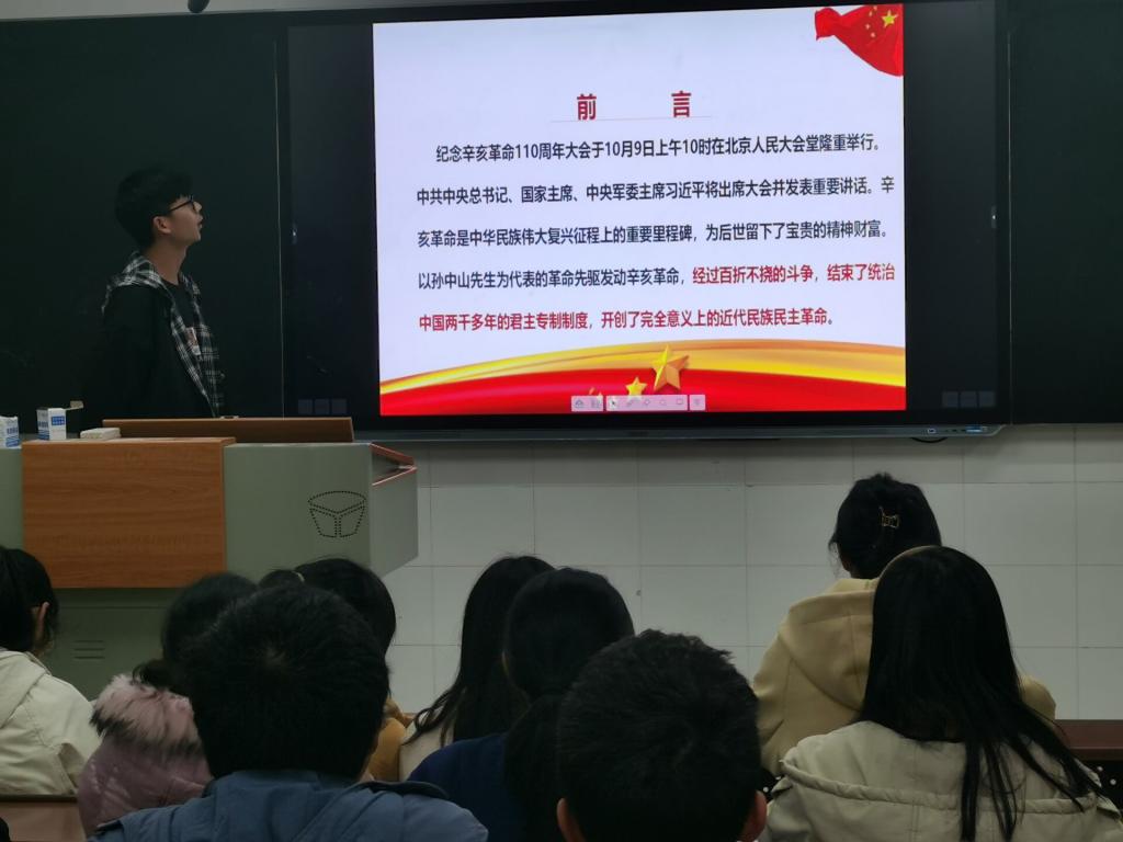 罗雅文围绕辛亥革命这一事件,带领同学们观看PPT,并学习习近平总书记在大会上的重要讲话精神并分享了自己的感悟。观看PPT后,小组有2位成员上台发表了自己的看法,罗雅文对此次活动作出总结。