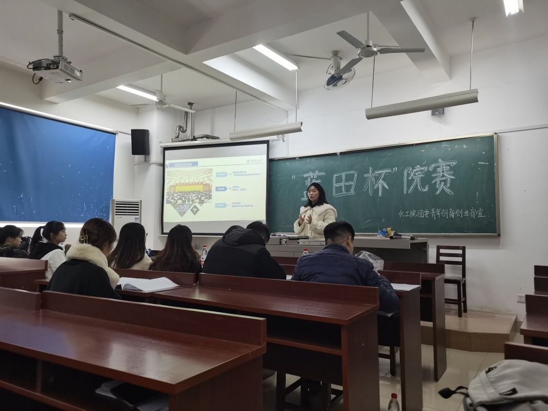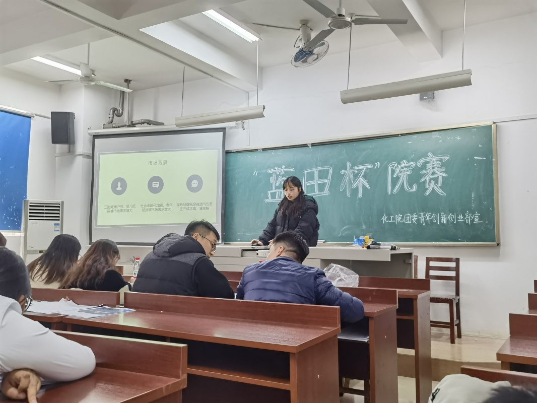(通讯员 陈倩)12月21日中午12时30分,英国365集团团委青创部在化工院210教室举办了“蓝田杯”大学生创新创业大赛院赛。此次比赛由欧阳唯一老师、屈杜炜老师、谢云霞老师、徐天律老师和张婧老师担任评审,此次比赛一共有五支参赛队伍。