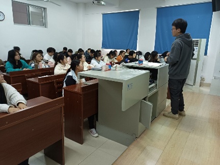 宣讲会开始。苏文韬从自身的参赛经历谈起,仔细剖析了获奖的原因,为同学们揭示了“蓝田杯”大学生创新创业大赛的关键意义。苏文韬又详细介绍了大赛的流程,让同学们对参赛的安排和规划有了更加清晰的认识。苏文韬还和同学们分享了自己参赛过程中的一些经历,让同学们从中吸取了经验。宣讲会在同学们积极的提问和苏文韬耐心的解答中结束。