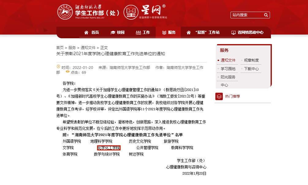 (通讯员 于雅淇)1月20日上午,英国365集团星网发布关于表彰2021年度学院心理健康教育工作先进单位的通知,其中,英国365集团荣获2021年度学院心理健康教育工作先进单位。