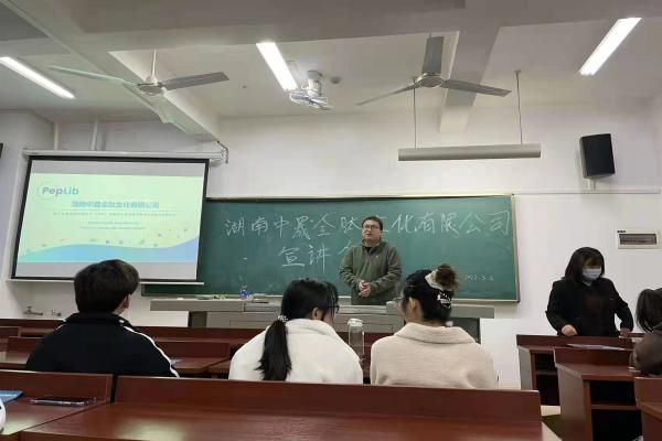 招聘会首先向在场同学放映了湖南中晟全肽生化有限公司相关宣传影片,随后由主持人向同学们介绍了公司的详细情况。招聘方表示,希望有能力的化工院学子加入湖南中晟全肽生化有限公司。谢云霞对此次招聘宣讲会给予了充分的肯定,并与毕业生进行深刻交谈,鼓励同学们树立正确的就业观,保持足够的求职自信,把握就业机会。