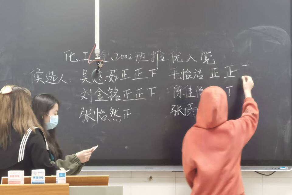 会议伊始,陈琦介绍了此次推优入党的六位候选人,他们分别是吴惠茹、刘金铭、毛怡洁、张怡然、陈佳怡、张雨萌,宣读完毕后候选人依次上台进行自我陈述。32位同学结合候选人的自我陈述进行了不记名投票,并现场唱票、公布票数。