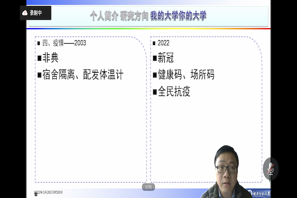 此次活动,张吉林介绍了2000年自己的大学生活和如今大学生生活的差异,从网络设备、通讯工具、娱乐方式、社团活动等方面讲述了不同时代大学生活的发展与变化。同时,张吉林提出随着现代网络技术的发展,学生的学习方式也变得多元化,由传统的面对面教学发展至线上教学。最后,张吉林又对同学们的提问作出解答,并告诫同学们近日疫情较为严重,要时刻听从学校安排,做好疫情防控。