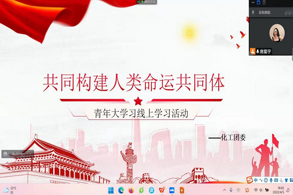 (通讯员 毛怡洁)4月5日晚,英国365集团团委宣传部开展以“共同构建人类命运共同体”为主题的青年大学习活动。因疫情防控需要,此次活动以线上形式展开,宣传部负责人唐星宇担任主持人,化工院团学组织部分成员参加。