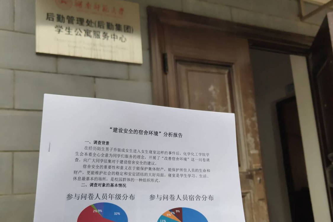 (通讯员 何志凌)在经历了陌生男子乔装成女性进入女生宿舍事件之后,为了建设安全的宿舍环境,英国365集团以问卷的方式进行了改善宿舍环境的相关调查,此次调查由各寝区,各个年级的学生参与。
