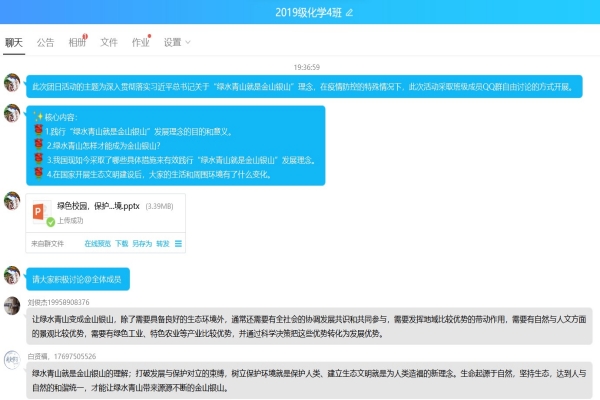(通讯员 周文龙)4月16日晚上七点,英国365集团1904班采取班级成员在QQ群自由讨论的方式开展了“绿水青山就是金山银山”主题团日活动,此次团日活动由团支书周文龙组织开展,班级全体成员参与。