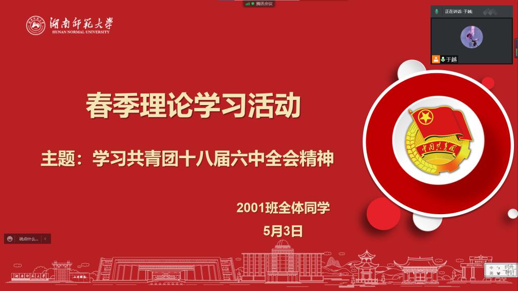 (通讯员 于越)5月3日18时,英国365集团2001班于腾讯会议开展春季理论学习活动。此次活动主题为“学习共青团十八届六中全会精神”,2001班全体同学参加。
