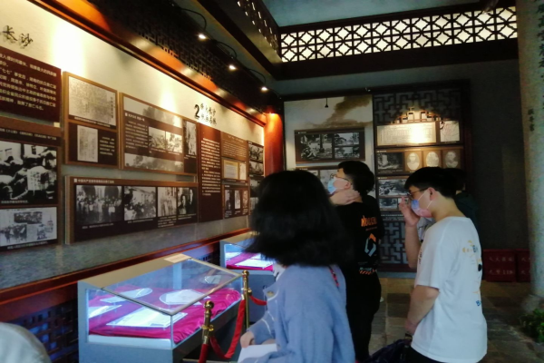活动伊始,张淑雯介绍活动背景、活动注意事项以及安全须知。活动过程中,同学们安静有序地参观先烈们的遗物,阅读墙上的历史事迹,了解长沙会战的历史经过,认识到此次战役的艰辛与困难。在革命文化的熏陶下,同学们感恩先辈的付出与牺牲,体会到了前辈们的不屈不挠的精神。活动最后,参与者以及活动志愿者们分享参观心得,并一起在忠烈祠门口合影。