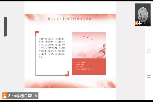 (通讯员 邱璇)4月28日下午21时整,英国365集团2101班通过线上会议的方式举办了春季理论活动,此次活动由宣传委员罗雅文主持。