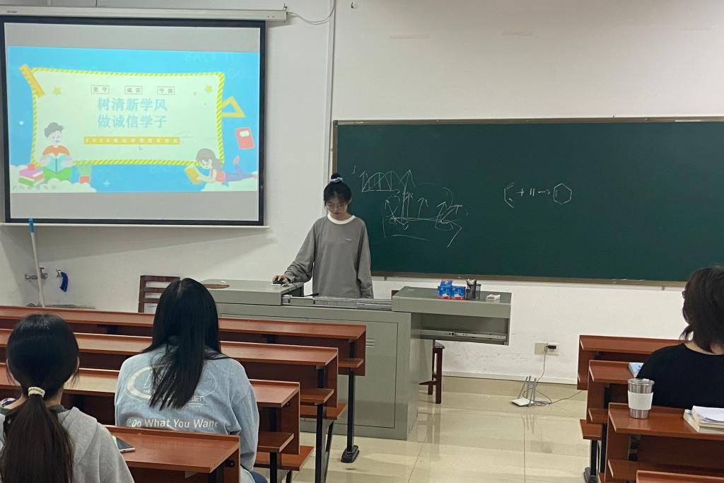 此次班会中,张馨予向同学们介绍了诚信的概念、诚信守则和诚信的意义,使同学们了解诚信的重要性,认识到诚信不仅是一种品行,更是一种责任;不仅是一种道义,更是一种准则;不仅是一种声誉,更是一种资源。接着同学们观看了与诚信相关的影片并分享了自己身边的诚信小故事。最后张馨予总结此次活动,呼吁同学们勿以善小而不为,勿以恶小而为之,去小恶而从善,积小善成大德,提高诚信水平。