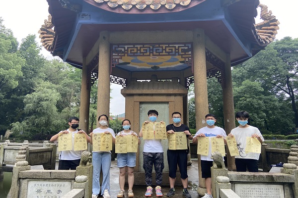 此次活动从游览忠烈祠并聆听工作人员讲解红色故事开始,聆听后同学们纷纷表示将继续珍惜当今的美好生活,并立志为社会主义事业建设添砖加瓦。随后同学们在陆军第七十三军抗战阵亡将士公墓前进行献花活动,以表达对先烈们的追思。活动最后,全体参与人员在岳王亭用毛笔书写爱国话语,朗诵爱国诗词,抒发广大青年学生爱国主义情怀。