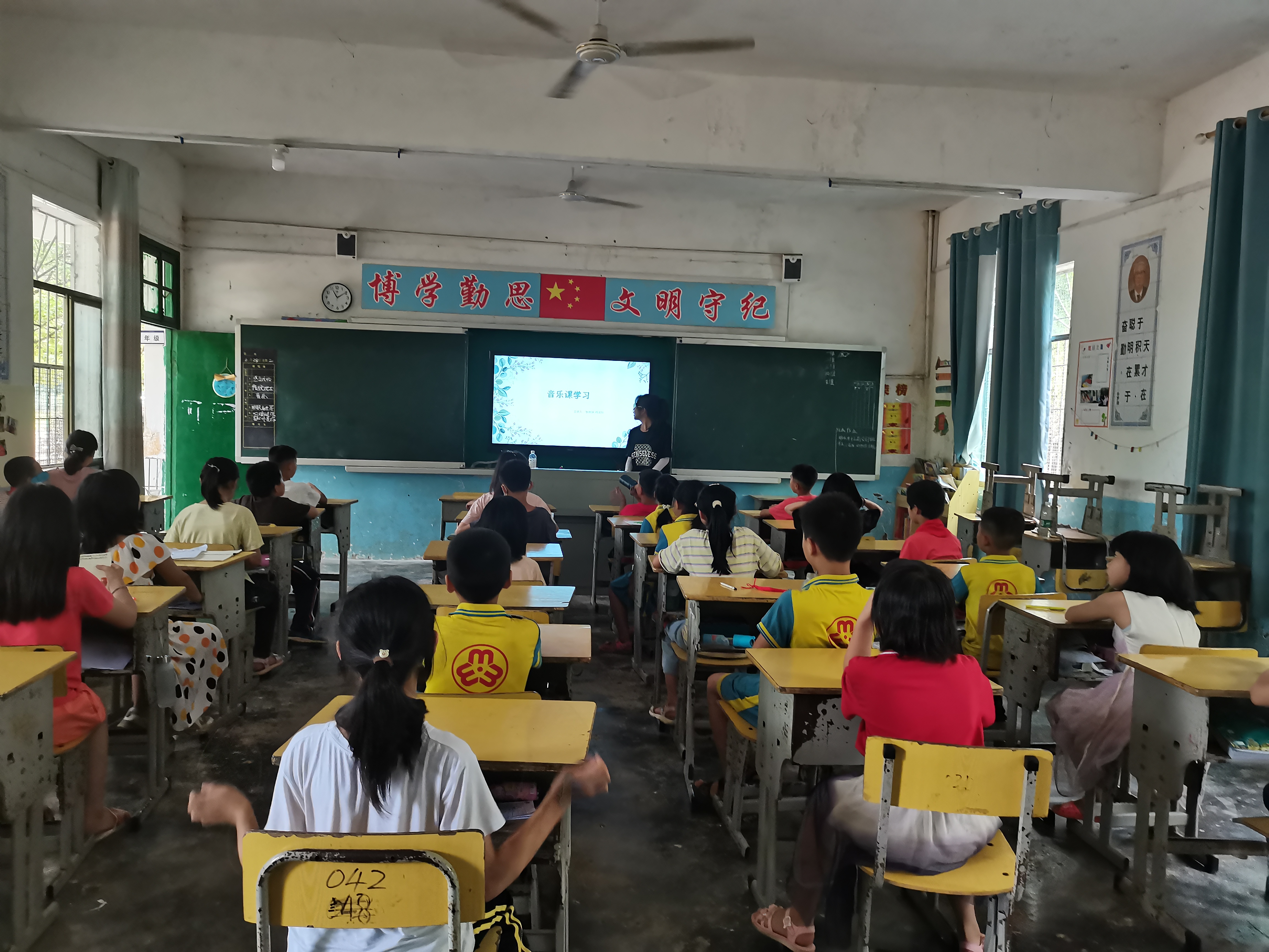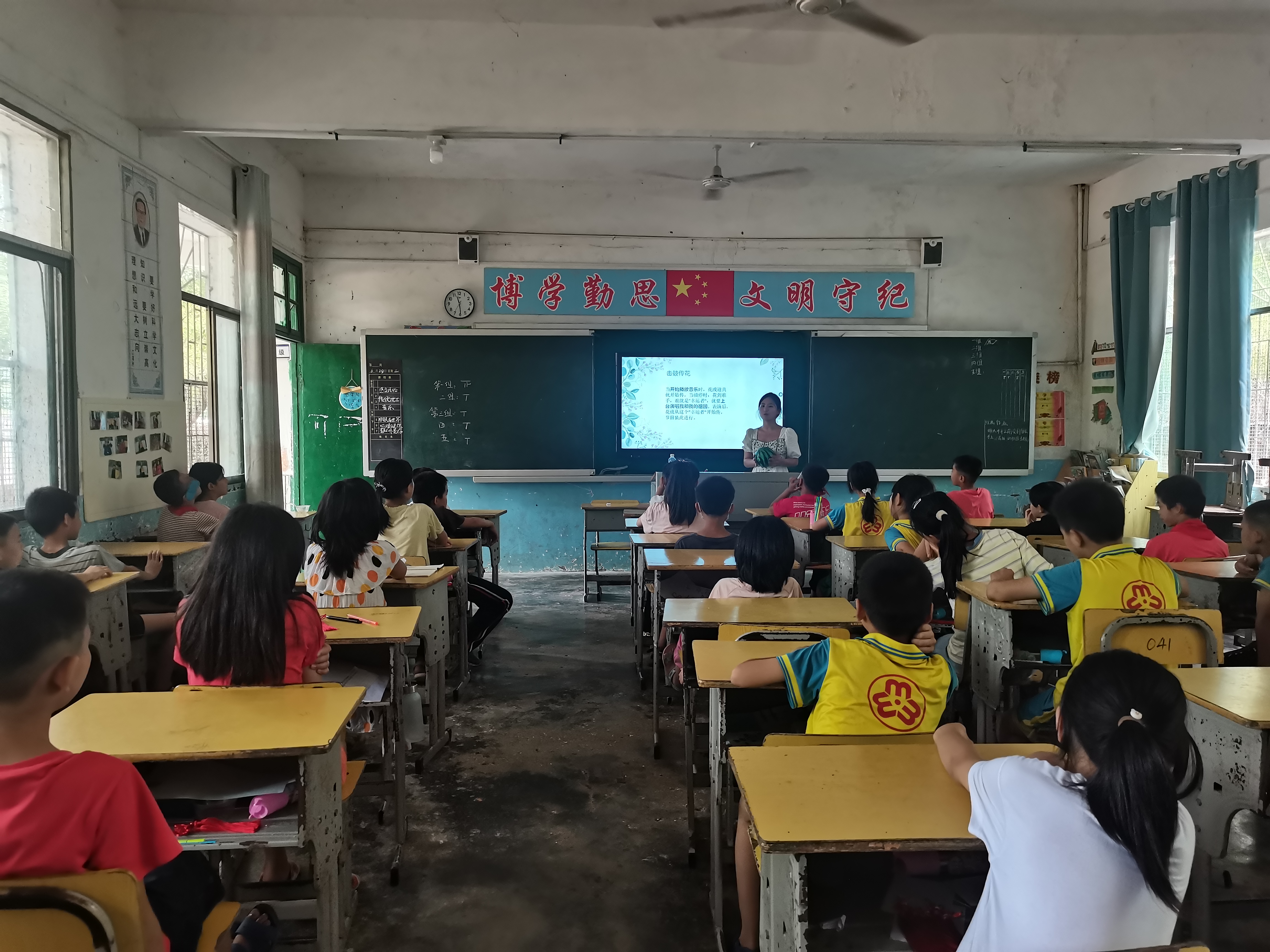 这次音乐课堂旨在通过学习歌曲、玩小游戏的方式培养同学们的爱国精神,帮其树立正确的人生观、价值观和世界观,并培养学生们的团结精神。