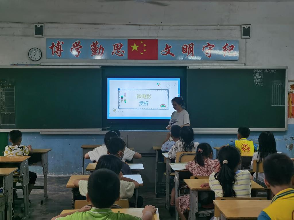 (通讯员 谢桢)6月29日19时,王美玲为主讲人,谢桢为辅教在苦志育才学校一楼四年级教室开展微电影赏析拓展课。主讲人王美玲以传统文化为主题,组织同学们观看十分钟微电影《百花深处》,在影片中和同学们一起深度剖析继承优秀传统文化思想深刻内涵。