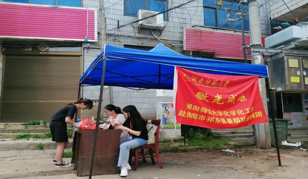 主讲人龙瑾在路边的临时宣讲台向围观的群众讲解了如何防止食物中毒,哪些食物不能混着食用。队员万玉婷和贺祝娣接着宣讲有关生活中消防有关的安全知识,如何安全用电,发生火灾如何逃生。队员唐湘京向大家宣讲了防溺水安全,告诫小朋友们不能私自去游泳,在暑假一定要以安全为第一。活动的最后,为了更好的宣传我们此次的宣讲知识,我们向路过的群众发送印有安全知识的宣传单。
