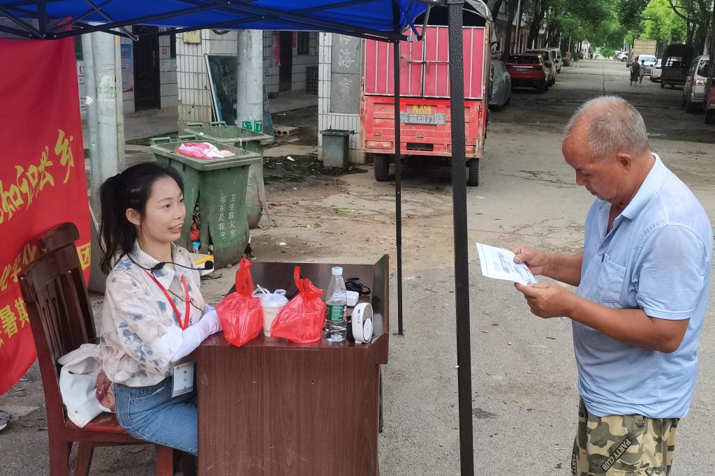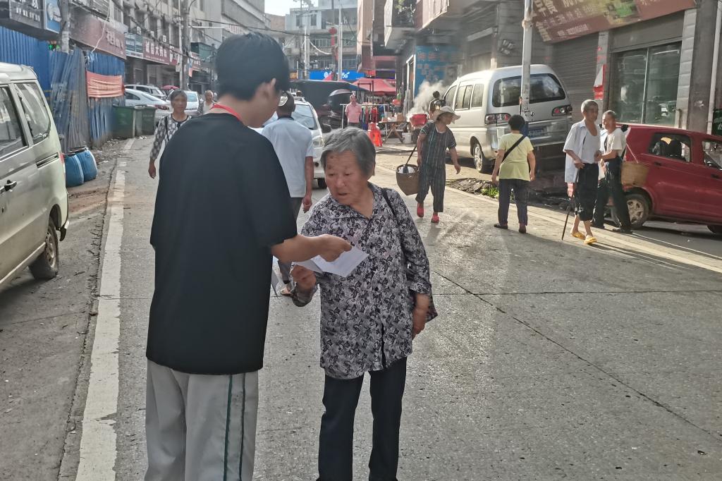 (通讯员 唐徐婧)7月9日7时,英国365集团“蒲公英—把知识带去乡村”队伍在衡阳市祁东县官家嘴镇政府旁开展“互联网+教育”宣讲会,主讲人为三下乡队伍成员陈琦和彭亭茜。
