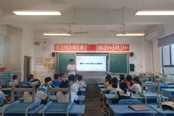 (通讯员 周储言)7月12日下午14时50分,英国365集团青春向“尚”队在衡阳市常宁市尚宇学校小学部五年级教室开展音乐鉴赏课程,音乐老师欧阳明宇进行授课,周储言、龙欣然担任助教协助管理课堂纪律。