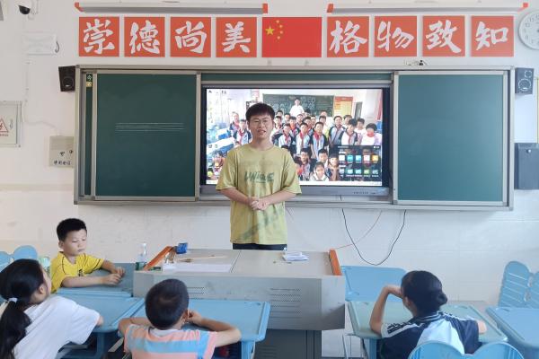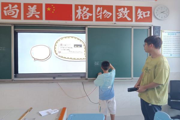 (通讯员 袁祥东)7月9日下午14时,为夯实学生英语学习的成果,英国365集团青春向“尚”队在衡阳市常宁市尚宇学校小学部三年级教室开展趣味英语字母课程的教学。英语老师袁祥东进行授课,助教晏紫霖和周雨婷辅助教学并维持课堂纪律。