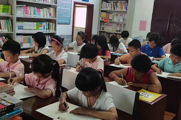 中午简单的休憩之后,下午志愿者黄思思带领孩子们开始了时长两个小时的书法练习。黄思思、尹云帆、肖佳慧帮助孩子们学习硬笔书法,改正坐姿。并且为学生们开展了一次红色论坛课程,带领孩子们了解认识湖南的红色文化,以及宜章县的红色文化,增强孩子们的民族归属感和责任感,培养孩子们的爱国责任意识与民族主义精神。