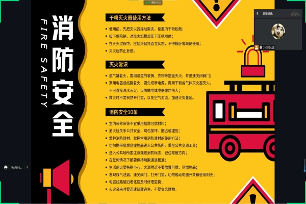 活动伊始,马心蕊向大家强调了消防安全对于大学生的重要性。随后,马心蕊与同学们共同学习了如何消除身边的消防安全隐患,提醒大家注意安全用电等,希望同学们配合学校,整理宿舍内务、彻底清理违章电器、清除消防通道堆积杂物等安全隐患。活动的最后,马心蕊就宿舍消防、用电、防盗等方面对同学们进行安全教育,呼吁同学们共同营造安静、安全、温馨良好生活学习环境。
