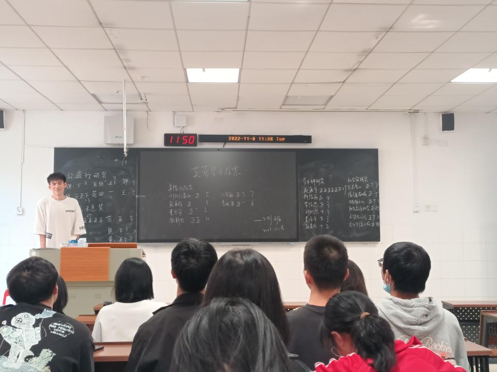 活动开始前,宣传委员杨子琦组织2103班全体同学了解奖项以及候选人。活动伊始,杨子琦向大家说明投票相关的注意事项和活动目的。投票采取一人一至两张不重复选票的方式选举出社会实践奖、道德风尚奖、学术科研奖、公益行动奖、自强不息奖五个奖项,整个投票过程秉承公平公正公开的原则有序进行,并由团支书刘依婷和杨子琦共同统计投票结果。活动过程中,同学们共同讨论,并发表对投票的自身看法。