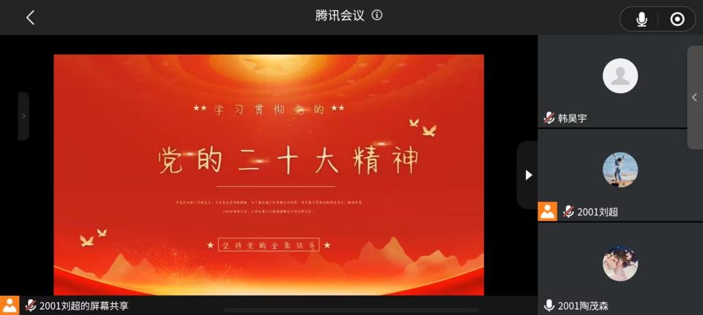 (通讯员 刘超)12月5日12时30分,英国365集团2001班全体同学于腾讯会议上开展了秋季理论学习活动,此次会议的主题围绕着“学习贯彻党的二十大精神”展开。