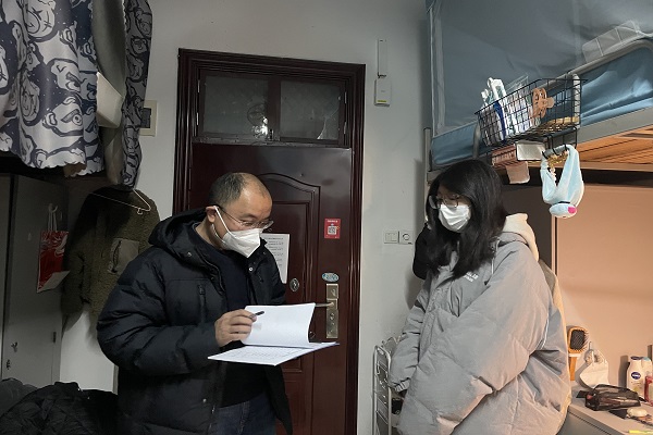 走访过程中,老师们主要就疫情防控工作、寝室安全等方面开展教育,叮嘱同学们保持宿舍干净卫生,戴口罩、切实做好自我防护;严格遵守学校住宿管理规定,提高安全意识,注意防火、防盗、宿舍用电安全,坚决杜绝使用大功率电器和私拉乱接电线等违规行为,营造和谐文明、勤学向上的寝室文化。除此之外,班导师们还就学习和就业方面的某些问题进行指导,叮嘱同学们增强自主自律意识,提高学习效率;要根据自己的规划合理安排时间,有任何问题可以及时沟通。