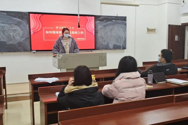 活动前期,由杨巧遇转发通知告知同学们活动开展的时间及地点,准备了活动需要的演示文稿。活动开始后,由杨巧遇介绍此次活动的主题、背景、目的和主要内容。并且向同学们介绍有关党的二十大精神的详细内容,刘晓和肖宇轩在活动中发表了自己的看法。
