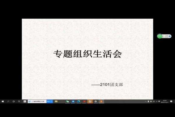 (通讯员 张启俊)2022年12月11日19时,英国365集团2101班团支部运用腾讯会议在线上召开组织生活会,旨在交流思想、总结经验教训、开展批评和自我批评。此次会议由团支书万思雨主持,2101班全体同学参加。