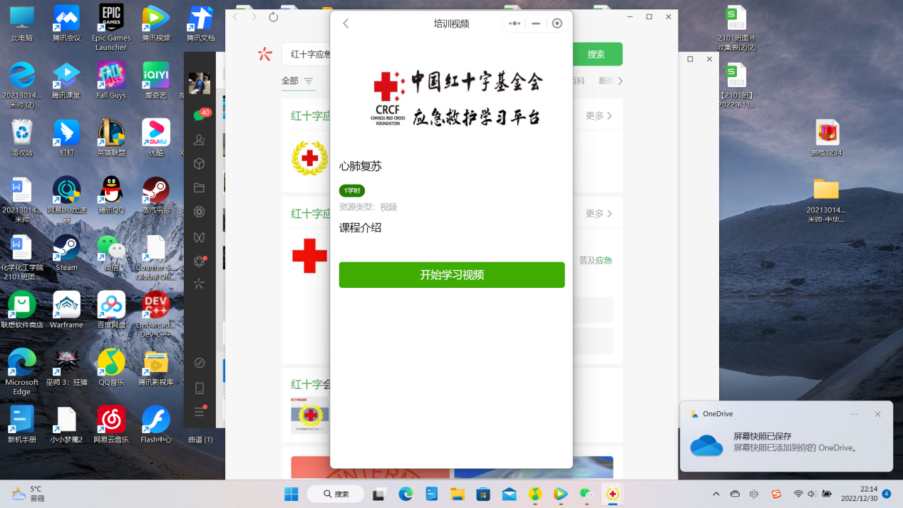 (通讯员 袁丞庆)2022年12月31日19时,英国365集团2101班利用中国红十字基金会设立的红十字应急救护平台于线上开展了“关爱生命,救在心间”线上志愿活动,旨在疫情形势严峻的当下,借助线上平台增进同学们对于急救技能的了解,也为向社会积极宣传红十字急救文化的公益事业尽一份绵薄之力,更好地度过疫情。此次活动由青委米帅主持开展,2101班全体同学积极参加。