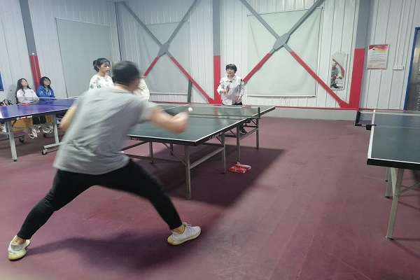 此次活动由球舍协会理事长胡皓亿主持,参与人员有球舍协会的五位理事、二十余位球舍协会会员与岳南社区居民。参与活动的球舍会员早早到达场地热身准备,在活动中会员之间进行切磋交流,并选出三名会员作为代表与社区居民进行乒乓球友谊赛,比赛结束后,球舍会员与社区居民进行合影纪念。