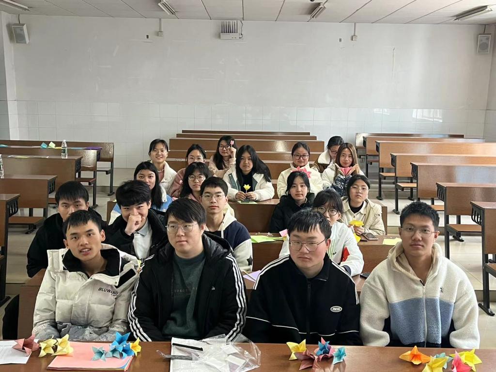 志愿活动开始前,志愿者在王思雨处有序签到。志愿者被分为三个小组:樱花组、郁金香组和百合花组。折花活动开始时,各小组领取自己的折纸、剪刀和胶带,观看折纸视频并开始折纸。送花活动开始时,志愿者跟随各地区负责人前往各地点送花并在送花时拍照留影。志愿活动结束后志愿者收拾活动场所并拍照留念。