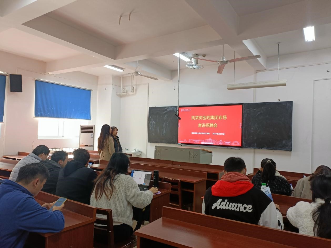 (通讯员 王菲)2月21日下午,凯莱英医药集团专场宣讲招聘会在学院化学楼217教室举行。2023届毕业生辅导员唐健清出席本次招聘会,招聘会由凯莱英医药集团招聘专员进行宣讲。2023届部分毕业生参加本次招聘会。