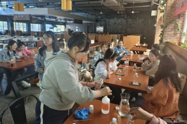 (通讯员 向梦圆)4月8日15时,英国365集团化学与社会协会在二里半校区江边食堂一楼举办趣味实验“化学红绿灯变色瓶”活动。