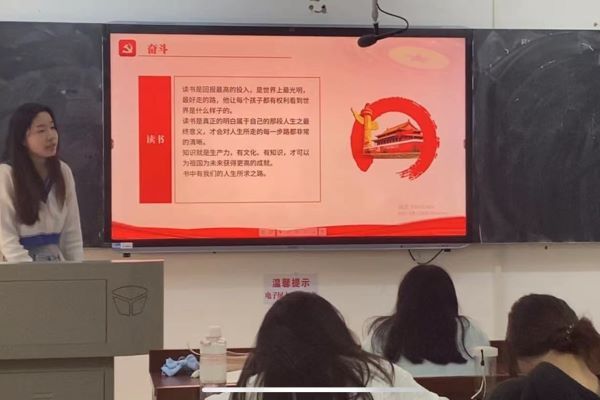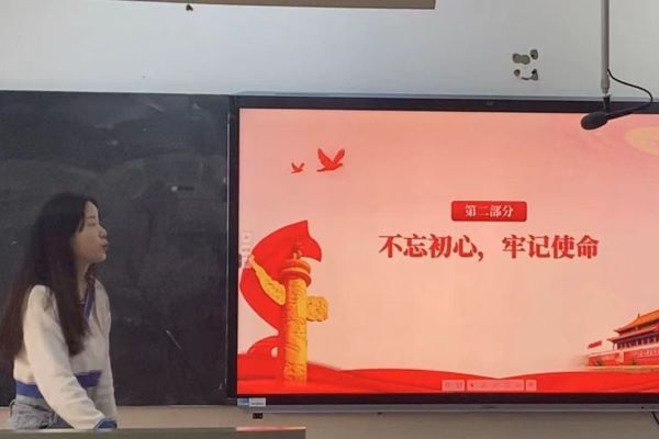 本次活动分为四部分。在活动第一部分,卫丹丹从各个方面为同学解释了“青春”这一词的含义。第二部分同学们通过学习习近平总书记在二十大发表的重要讲话,领会到“奋斗”的重要性。随后,卫丹丹为同学们讲述了各个年代青年人的奋斗历程,使同学们感受到青春与奋斗是紧紧联系在一起的。活动的最后,同学们对于“青春时期我们该如何奋斗”这一问题进行讨论,发表自己看法与意见。